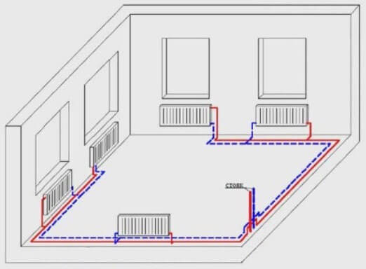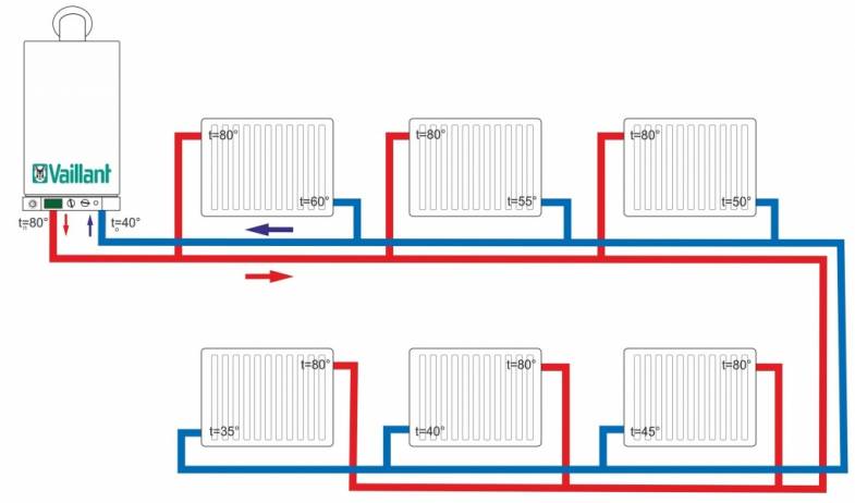 Les conceptions à deux tuyaux sont plus complexes que l'utilisation d'un seul tuyau. Dans le même temps, ils deviennent le moyen le plus populaire de chauffer un immeuble privé et un immeuble d'appartements. Caractéristiques positives :