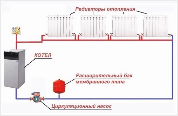 La principale différence avec les systèmes avec mouvement naturel de l'eau est la présence d'une pompe. Il force le liquide de refroidissement à se déplacer le long d'un circuit de chauffage fermé. Dans le cas de l'utilisation d'une pompe, la conception du système est simplifiée, car les facteurs externes n'affecteront pas le mouvement normal du liquide de refroidissement. Les circuits de pompe sont le plus souvent utilisés.