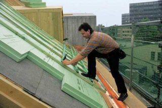 Le toit est isolé de l'intérieur et de l'extérieur. Dans le premier cas, c'est possible après la fin de la construction. Les plaques peuvent être posées à l'aide de la technologie frame et frameless. Sur une toiture plate, le matériau est posé sur un revêtement imperméabilisant. Les dalles sont disposées à part, si nécessaire en deux couches. L'isolant est recouvert d'un géotextile. La couche de finition est une chape en béton ou un remblai en gravier.
