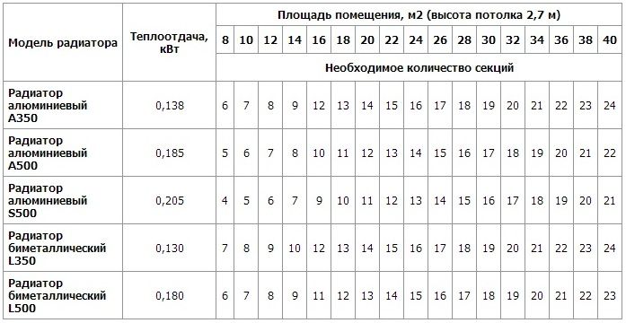 - Transfert de chaleur d'une section - la caractéristique vous permet de calculer le nombre de sections nécessaires pour chauffer la pièce.