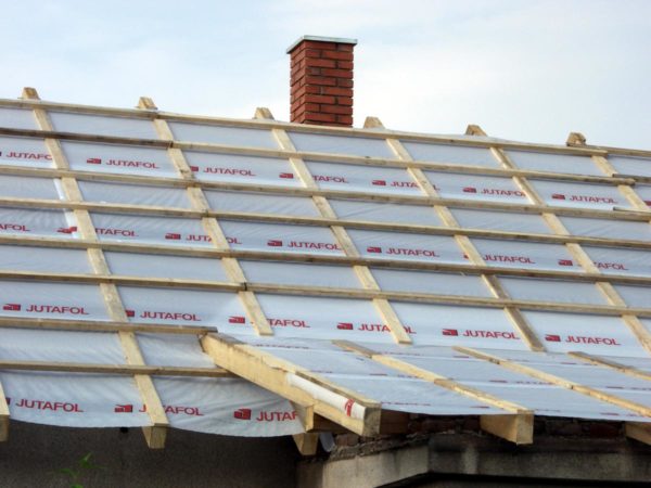 Les côtés de la membrane ne doivent pas être confondus. L'avant est lisse, déperlant, tourné vers « la rue », l'intérieur rugueux est tourné vers l'isolant. Vendre du matériel en rouleaux. Il est découpé en larges bandes et superposées de 15 cm.