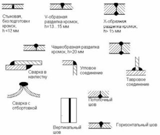 - Lors de l'exécution - horizontal (sur les sections verticales), vertical (sur les poutres horizontales), plafond (lorsque le joint est fait par le bas), bas (électrode sur le dessus du joint).
