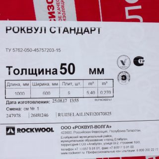 La dernière taille d'isolant Rockwell varie en fonction de l'échantillon spécifique du produit. L'une des modifications possibles pour cet indicateur est représentée par le produit Rockwool Standard 50 mm.