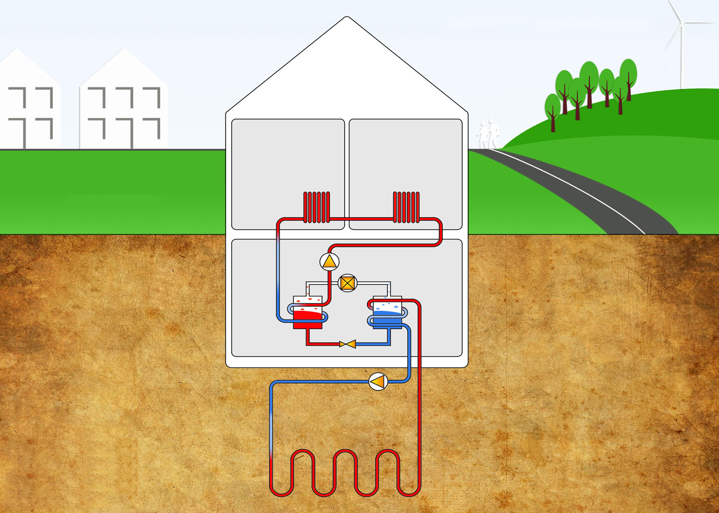 Un système de chauffage géothermique est une unité semi-autonome qui fonctionne sur deux sources d'énergie :