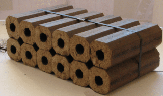 Les briquettes combustibles de différentes formes fabriquées dans les usines, qui sont fabriquées par pressage de sciure de bois, ont une densité élevée (environ 1100 kg / m3), ainsi qu'une faible teneur en humidité (moins de 9%). Leur utilisation permet d'obtenir une conductivité thermique égale à 5100 kcal/kg. Il existe des briquettes de combustible, imprégnées de composés spéciaux, qui aident à obtenir une flamme de la couleur souhaitée. Dans les foyers à foyer ouvert, les briquettes de combustible brûlent rapidement, il est donc préférable de les utiliser avec un foyer fermé.