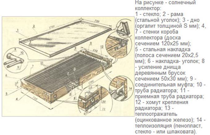 Les tubes sont installés sur le cadre et doivent être placés verticalement. À l'aide de raccords et d'adaptateurs, ils forment un contour en serpentin. Pour réduire les pertes de chaleur, la partie avant est protégée par une feuille de polycarbonate transparent, qui est ensuite peinte en noir. Vous trouverez plus d'informations sur la technologie permettant de chauffer gratuitement votre maison de vos propres mains dans la vidéo: