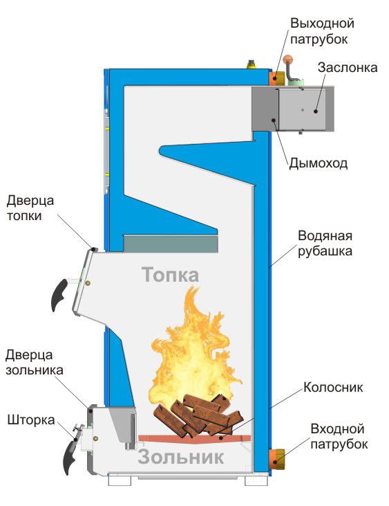 - Capacité de régulation de puissance... Dans les poêles à bois, cela se produit en ouvrant (fermant) la porte du cendrier. Dans les modèles à pyrolyse, le degré de chauffage de l'eau est régulé par le débit d'air ;