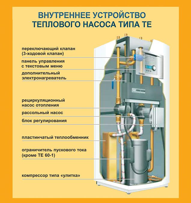- Contour intérieur... Dans celui-ci, à l'aide d'un échangeur de chaleur, l'énergie thermique est transférée du réfrigérant au liquide de refroidissement dans le système de chauffage principal de la maison.
