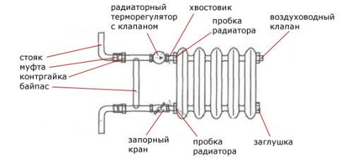 Le système gravitationnel est dans la plupart des cas monotube (Leningrad). Afin de bien monter le radiateur de chauffage, il est nécessaire d'installer un by-pass sur chacun d'eux. Cela doit également être pris en compte lors de l'achat de composants et de l'élaboration d'un schéma d'installation général.