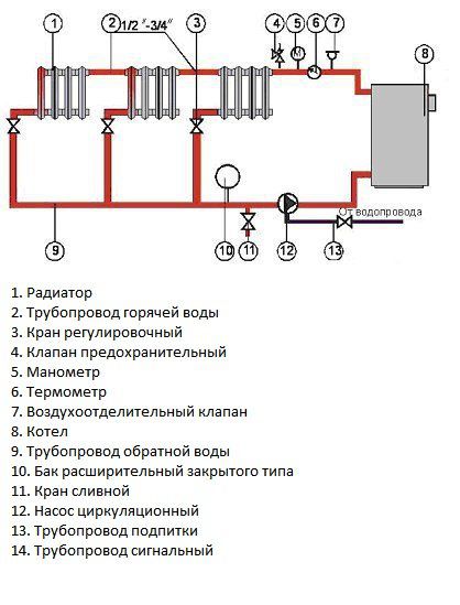 Il est beaucoup plus difficile d'installer un système de chauffage à circulation forcée. La différence réside dans la création d'une pression accrue dans la ligne. Cela contribue à une augmentation de la longueur des canalisations et à un régime de température optimal pour le fonctionnement de l'ensemble du système.