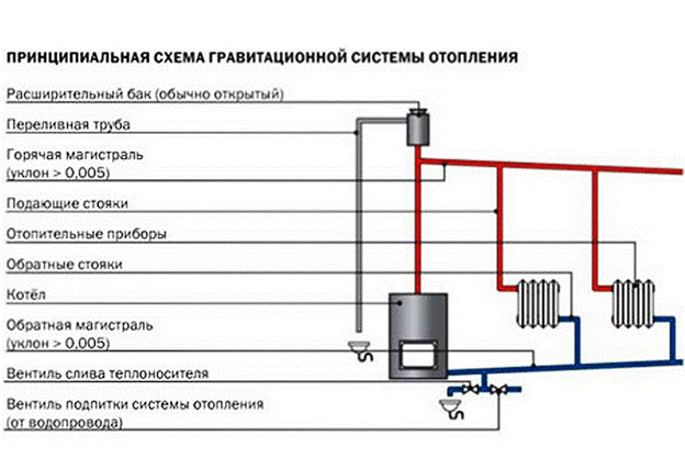 Installation de chauffage par gravité