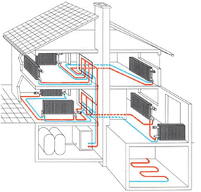 Schéma de principe du chauffage d'une maison de campagne installation rapide et facilité d'utilisation;