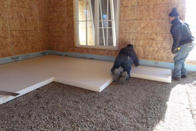 Au lieu d'argile expansée, vous pouvez utiliser de la mousse de polystyrène creuse extrudée en dalles. Dans ce cas, la couche intermédiaire de la chape est renforcée par un maillage de tiges d'un diamètre de 8 mm et plus. La chape est également réalisée de manière sèche, en doublant de contreplaqué résistant à l'humidité, sous lequel l'isolant est coulé.