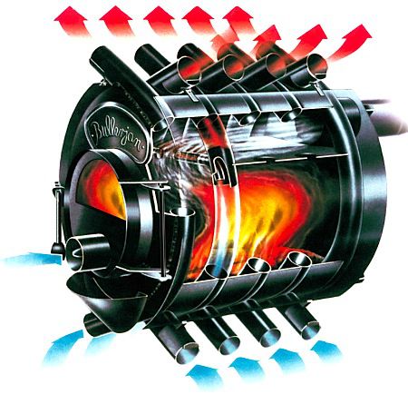 L'une des chaudières à convection aérienne les plus populaires à l'heure actuelle sont les fours Bulleryan. Ils se composent d'un corps cylindrique à l'extérieur duquel passent des tuyaux de convection.
