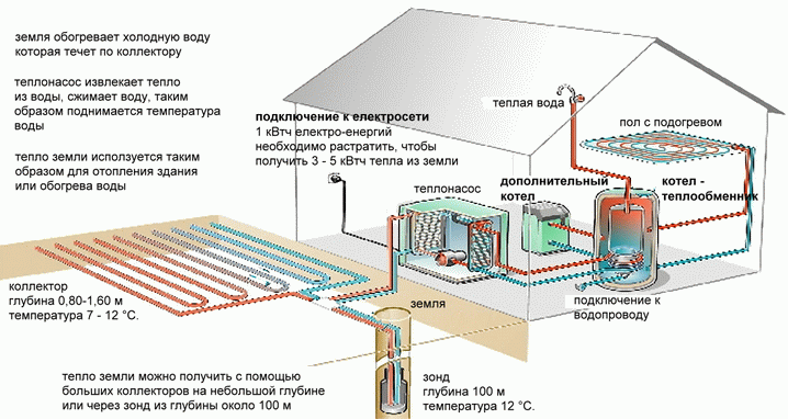 La base du fonctionnement de ce type de chauffage alternatif d'une maison privée est une augmentation de la température dans le sol à mesure qu'il s'approfondit. En moyenne, la croissance est d'environ 2,5-3 ° C tous les 100 m. À première vue, cela ne suffira pas pour le chauffage. Pour l'utilisation pratique de cet effet, vous aurez besoin d'un équipement spécial - une pompe à chaleur.