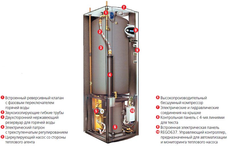 Son principe de fonctionnement réside dans l'application pratique de l'effet d'augmentation de la température du réfrigérant avec l'augmentation de la pression. Pour ce faire, les éléments suivants doivent être inclus dans la composition du chauffage alternatif d'une maison privée avec pompe à chaleur :