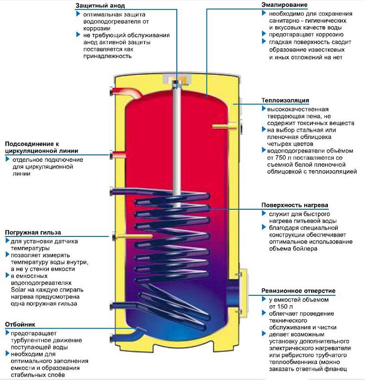 Ils diffèrent des chauffe-eau électriques pour le chauffage, de type BEO, par leur faible rendement en tant que principale source de production de chaleur. Mais de cette façon, vous pouvez réduire les coûts énergétiques actuels. Lors du choix d'une chaudière à chauffage indirect, il est recommandé de faire attention à ces paramètres.