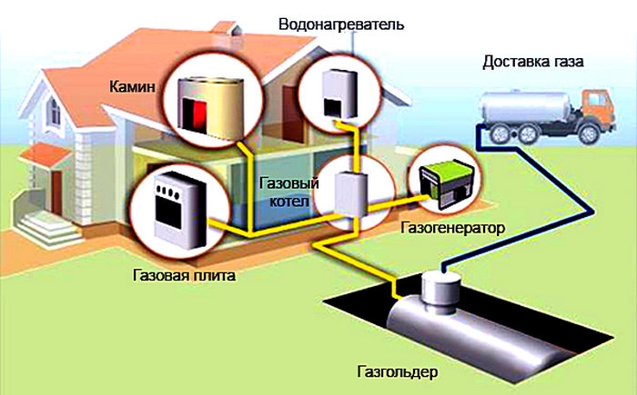 En outre, une condition importante dans la conception du chauffage au gaz liquéfié est l'organisation du stockage du combustible. Pour cela, vous pouvez utiliser des bouteilles ou un gazomètre. Cette dernière option est préférable si la superficie de la maison est suffisamment élevée.