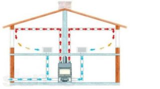 Selon le mécanisme de circulation de l'air, il peut être divisé en naturel et forcé. Dans le premier cas, l'air déjà chaud montera dans les tuyaux (conduits d'air), et ainsi il se déplacera dans toute la maison. Le deuxième type implique l'installation de ventilateurs supplémentaires, qui auront pour tâche de faire circuler l'air dans toute la maison. De tels ventilateurs, en règle générale, sont installés au sous-sol et, à leur tour, conduisent l'air chauffé à travers les conduits.