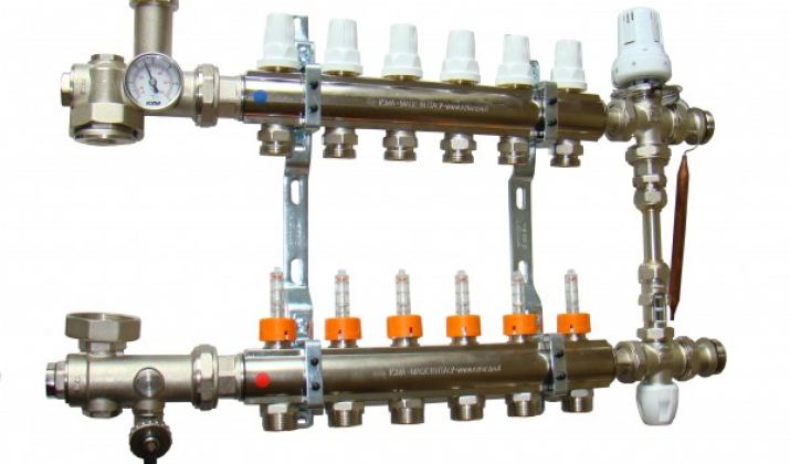 Souvent, c'est sur eux que sont installés des groupes de régulation automatique de l'arrivée de liquide de refroidissement. Dans les schémas de chauffage par capteurs complexes, le peigne central est équipé uniquement de pompes de circulation et de vannes d'arrêt pour chaque circuit.