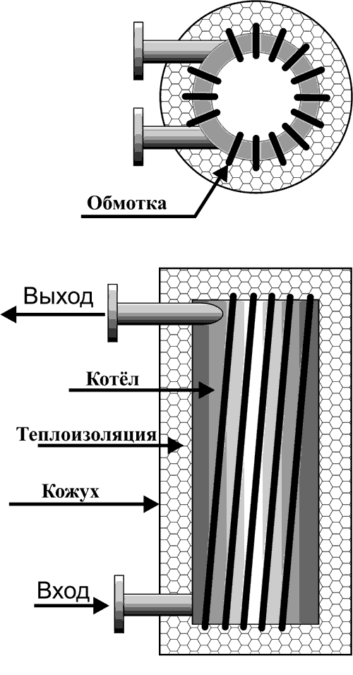 Pour réduire les pertes de chaleur, les parois extérieures sont isolées avec de la laine de basalte. Ainsi, il est possible d'installer des chaudières à induction pour chauffer une maison privée dans des locaux techniques.