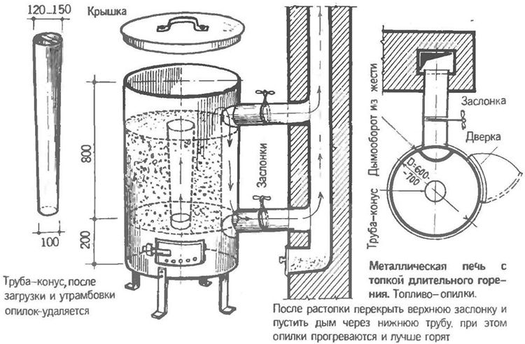 Pour chauffer un petit bureau ou une buanderie, vous pouvez fabriquer vous-même une chaudière maison.Le plus souvent, cela est important pour organiser l'approvisionnement en chaleur d'un garage, d'un petit atelier de production ou d'un entrepôt. La fabrication des poêles à bois se fait à l'aide de matériaux de récupération.