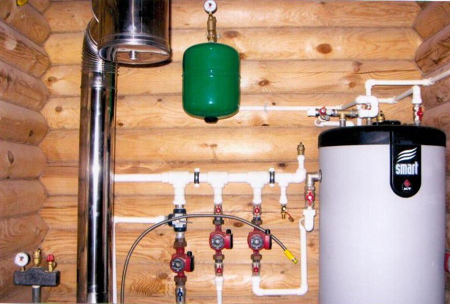 Les règles de conception et d'installation du chauffage de l'eau à combustible solide d'une maison en bois ne sont pratiquement pas différentes de celles au gaz. Les exceptions sont des recommandations pour l'aménagement de la chaufferie.Les grandes dimensions des chaudières à combustible solide et le chauffage de leurs surfaces déterminent des exigences particulières pour la chaufferie.
