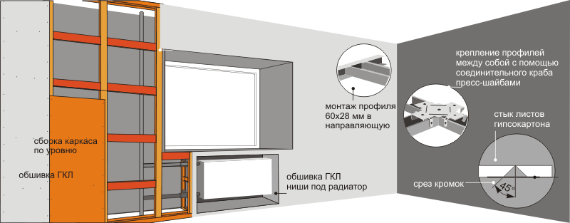Selon le schéma choisi, ils peuvent couvrir uniquement les tuyaux de chauffage, ou complètement le mur où se trouvent les communications. Cette dernière option est préférable pour les locaux de grande surface, où l'espace de vie ne manque pas.