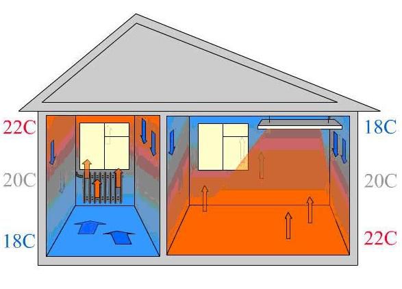 Vous devez également vous rappeler que la chaleur d'une pièce d'une maison peut aller dans d'autres pièces. Par conséquent, lors du choix d'une méthode de chauffage, il est nécessaire de prendre en compte la circulation d'air interne dans le bâtiment.