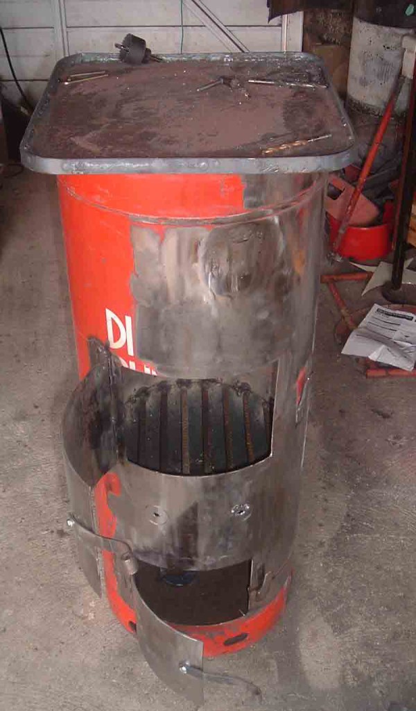 - percez un trou pour la cheminée. Elle peut se faire en haut de la structure par le côté ou directement sur le couvercle du cylindre.