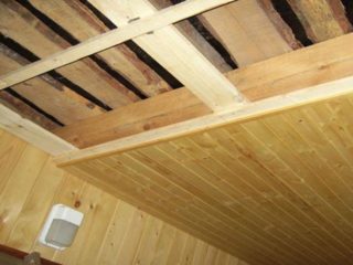Pour cela, toutes les planches conviennent, elles doivent être posées avec un revêtement de sol continu, puis fixées avec des clous ordinaires et fermées avec n'importe quel matériau de finition. Mais le revêtement peut ne pas être fait si le deuxième étage est inhabité. À ce stade, le dépôt est terminé. La partie intérieure du plafond peut également être recouverte d'une couche de finition.