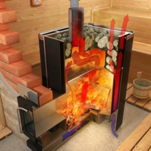 - Selon la méthode d'installation et le type de porte du foyer - store auto-refroidissant ou panoramique avec verre résistant à la chaleur, tiré d'un hammam ou d'une pièce adjacente.