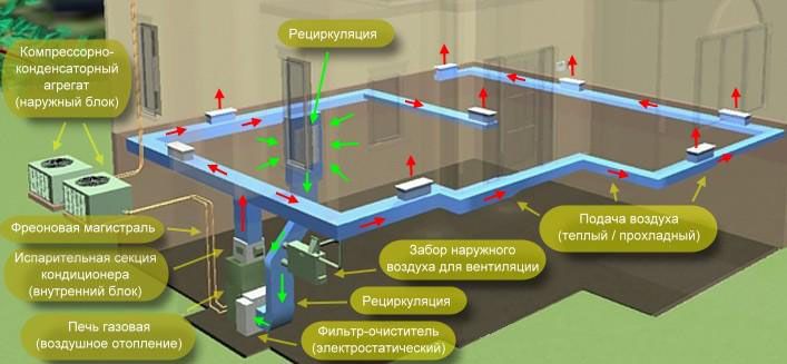 Contrairement aux chaudières de chauffage industrielles, le principal élément de travail de l'air est le système de climatisation, qui combine plusieurs fonctions. Il s'agit notamment de l'alimentation en air chauffé du consommateur et de l'échange d'air dans la salle de travail.