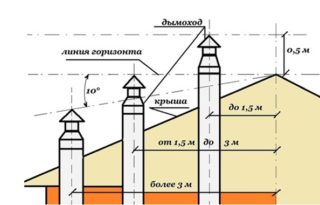 - de la surface extérieure du toit à la sortie du tuyau, la distance doit être d'au moins 50 cm.
