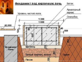 Selon les marquages résultants, les planches sont soigneusement découpées, après quoi l'accès au sol est ouvert. À cet endroit, la fondation du poêle sera située, qui n'est pas associée à la base de toute la maison - le rétrécissement de ces deux bâtiments est différent. Dans le sol exposé, il sera nécessaire de préparer une fosse de fondation de 0,5 mètre de profondeur, puis de procéder à l'aménagement de la fondation, construite à partir de moellons ou de briques de bataille. Dans le premier cas, aucun coffrage n'est requis ; il suffit de poser des pierres propres sur le fond, coulées couche par couche avec du béton. Lors de la pose, il est important de s'assurer qu'il n'y a pas de vides clairement distinguables entre les ébauches de gravats.