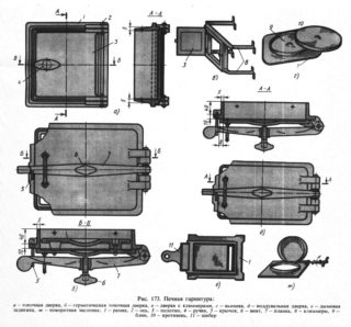 La gamme de composants et la quantité de matériaux de construction nécessaires dépendent du type de structure de four choisie, au sein de laquelle ils diffèrent peu. Pour les échantillons purement chauffants, il n'est pas nécessaire d'inclure une plaque de cuisson, un four ou un réservoir d'eau dans le projet. Un ensemble typique d'éléments en fonte et en acier comprend les éléments suivants :