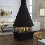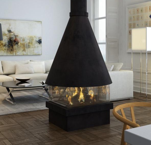 - Île. Cheminée, qui se démarque. Il se présente sous la forme d'une plate-forme plate légèrement au-dessus du niveau du sol. Les foyers insulaires sont divisés en foyers ouverts et fermés. Un collecteur de fumée et de vapeur est toujours situé au-dessus de cette zone et est relié à la cheminée. Cette option est assez originale avec un design correct, mais elle a un faible transfert de chaleur et prend beaucoup de place.