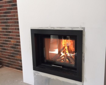 - Basé sur la conception - une cheminée prête à l'emploi en métal ou en fonte intégrée dans la pierre.