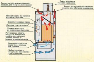 - Sur la combustion du bois pendant une longue période. Une cheminée à bois similaire qui utilise une technologie légèrement différente. Une fois que l'allumage s'est produit et que le réchauffeur s'est réchauffé, l'alimentation en air et en oxygène du four est artificiellement limitée. Cela provoque la combustion du bois et l'émission de gaz de pyrolyse, qui brûlent dans un autre compartiment au contact de l'air chaud. L'efficacité de cette option sera d'environ 60%. Le principe de la combustion par pyrolyse est utilisé dans de nombreux poêles et cheminées modernes.