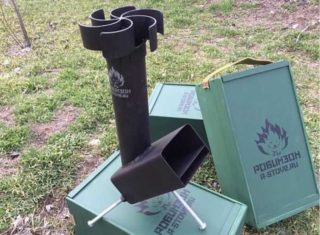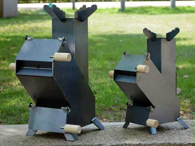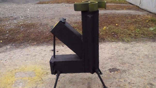 Pour une randonnée, équiper un chalet d'été, résoudre d'autres problèmes "temporaires", une version mobile de l'équipement de chauffage convient. Le four Robinson peut être utilisé comme un exemple pertinent. L'alimentation en carburant et en air est organisée par un élément profilé (section rectangulaire 150 x 100 mm). La zone de combustion est constituée d'un tuyau. Le diviseur à la sortie est utilisé comme grille pour réchauffer les plats.