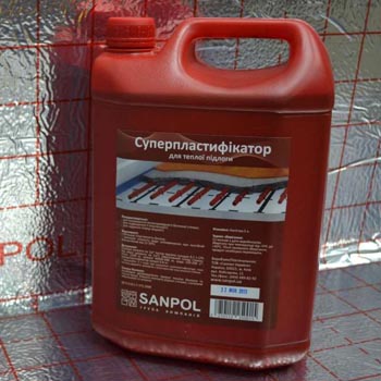 La société ukrainienne Sanpol produit un plastifiant sous forme de mélange liquide, qui a un effet positif sur les propriétés thermiques de la chape. Les avantages des produits de cette société incluent le temps de prise initial. Si des erreurs sont détectées lors du remplissage, elles peuvent être rapidement corrigées. Le rapport du modificateur et du ciment est de 0,2 l : 400 kg.