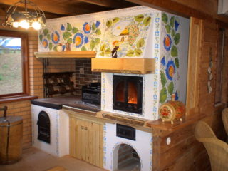 Si vous le souhaitez, le four peut être décoré avec un motif. Les motifs folkloriques ajouteront de l'individualité au foyer. La peinture artistique est facile à réaliser. Composition colorante :
