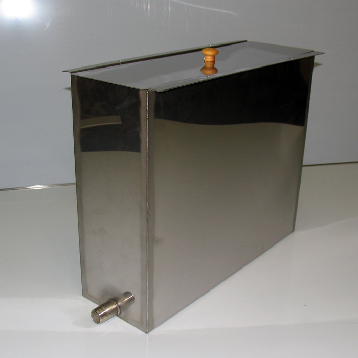 Les réservoirs diffèrent par leur conception, les matériaux utilisés, les dimensions et la forme. Il existe sur le marché des modèles spécialement conçus pour une utilisation dans le sauna. Les réservoirs avec circuit d'eau sont généralement en acier inoxydable ou en tôle galvanisée.