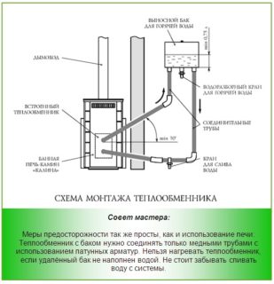 Afin de chauffer l'eau froide pour les procédures appariées, vous pouvez utiliser un appareil de chaudière ou installer un réservoir qui transférera la chaleur générée par le poêle au liquide. Pour que le fonctionnement de l'installation soit sûr et efficace, il faut savoir raccorder correctement la cuve à l'échangeur de chaleur dans le bain.
