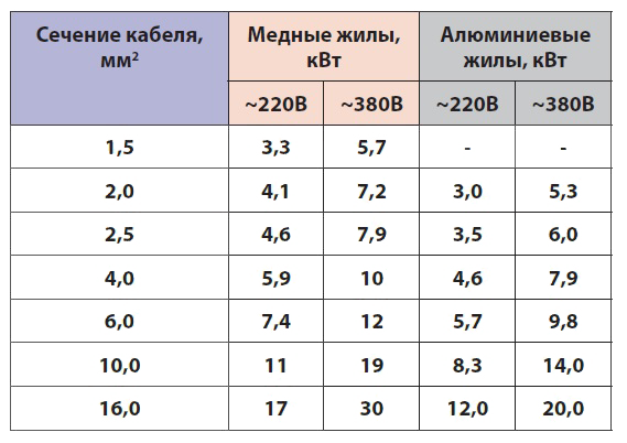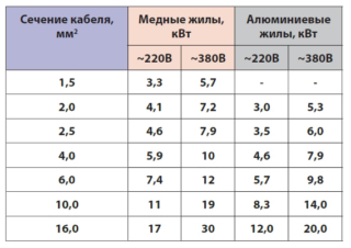 Selon les exigences du PUE, l'unité est connectée au réseau électrique via un ensemble de DDR plus un disjoncteur de protection, sélectionné en fonction de la consommation de courant nominale. La valeur de cette dernière est indiquée dans le passeport de l'équipement à installer et est prise en compte par phase. La section des conducteurs du câble d'alimentation est sélectionnée selon des tableaux spéciaux et dépend de la puissance de l'unité connectée.