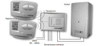 Les appareils sans fil sont considérés comme plus modernes, ils émettent des signaux sous forme d'ondes, grâce auxquelles l'appareil fonctionne. Les contrôleurs sans fil se composent de deux blocs, dont l'un est le thermostat lui-même et est placé dans la pièce, le second est situé près de la chaudière et connecté à celle-ci à l'aide de fils.