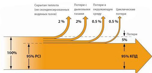 - Utilisation du facteur de condensation. Cela augmentera légèrement l'efficacité de l'ensemble du système de chauffage. Cependant, le coût des chaudières à condensation diffère de celui des chaudières traditionnelles de 35 à 40 % ;