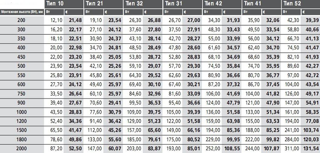 A titre de comparaison, vous pouvez considérer le tableau d'efficacité des radiateurs de chauffage en acier.