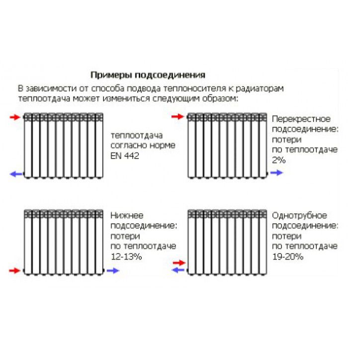Après avoir décidé de ce paramètre, vous pouvez procéder aux principales subtilités de l'augmentation de l'efficacité de la batterie de chauffage. Le principal est le moyen de se connecter au système. Il est préférable d'effectuer la connexion au système sur un côté de l'instrument. Ensuite, le liquide de refroidissement passera un cycle complet à travers la batterie.