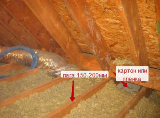 Pour l'isolation du plafond du grenier, il est pratique d'utiliser une isolation en nattes. Il est posé entre les chevrons du toit et fixé à la caisse avec des clous à tête large. L'épaisseur de la couche d'isolation est déterminée au préalable à l'aide d'un calcul d'ingénierie thermique. En plus de la protection thermique, l'isolation assure une isolation phonique.